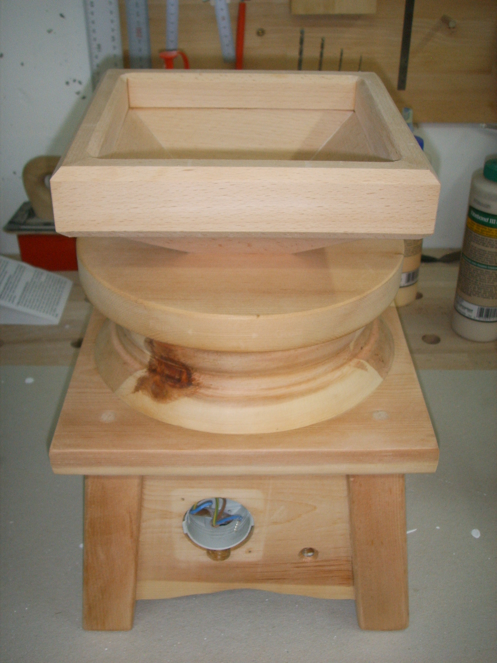 Tischleuchte aus Kirschholz und anderes