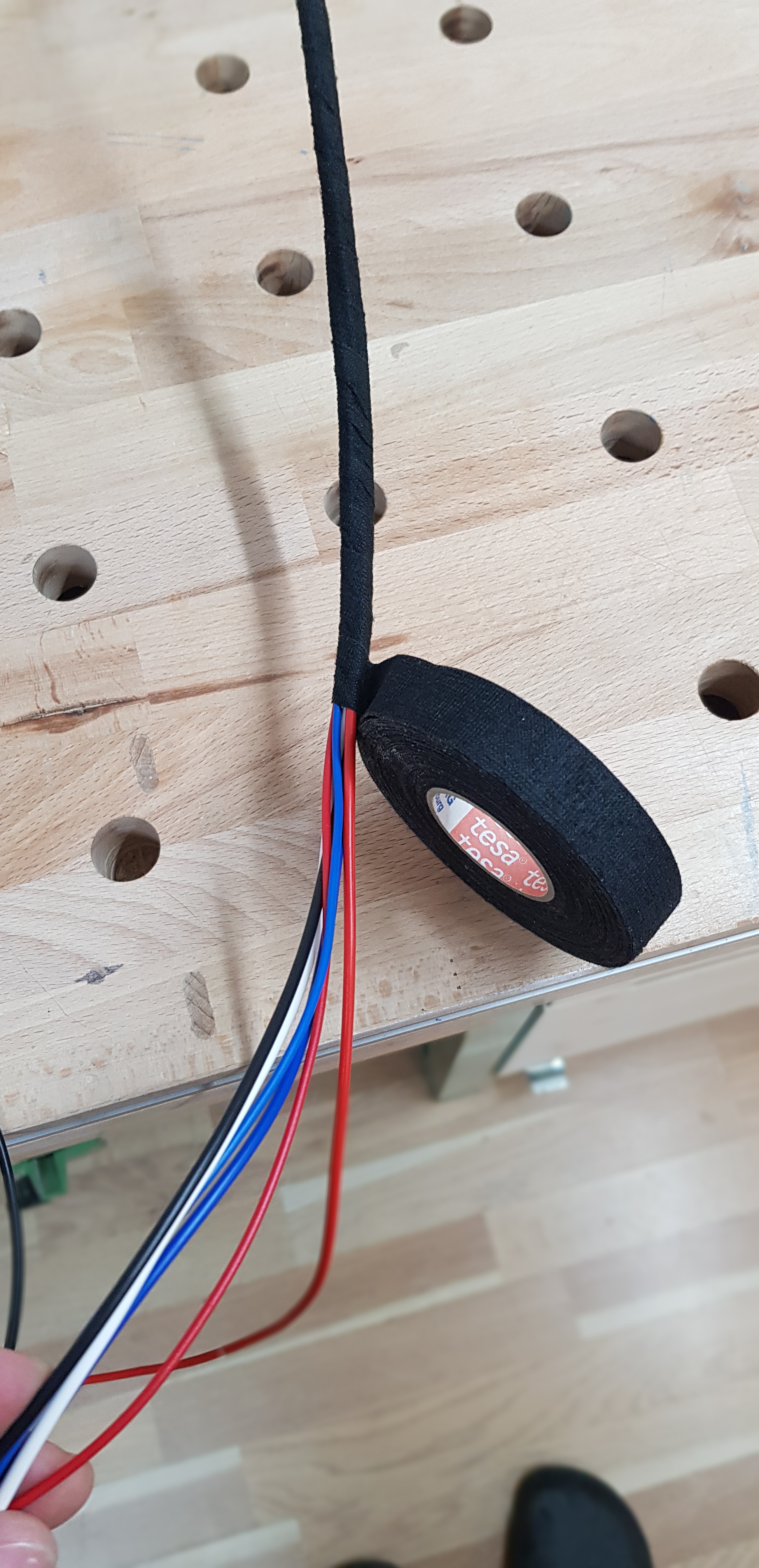 Alle Leitungen wurden mittels Textilklebeband gebündelt und erhalten einen zusätzlichen Schutz