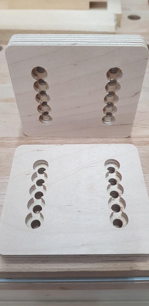 Mit der neuen Fräse muss erstmal Erfahrung gewonnen werden. Ich starte also mit kleinen Dingen und Spannhilfsmitteln, damit auch die Teile sicher gespannt werden können. Beim Fräsen treten dann doch ganz schöne Kräfte auf, und die müssen sicher abgefangen werden.