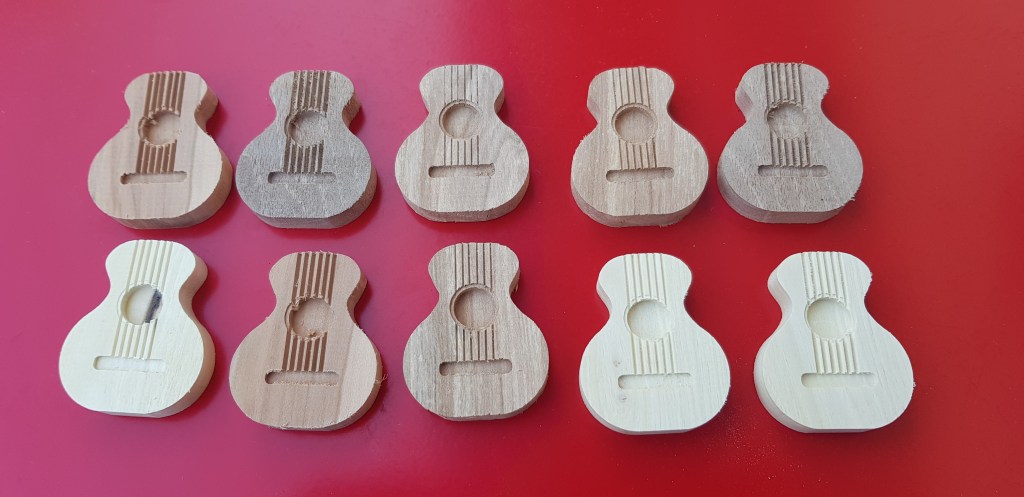 Kleine Schlüsselanhänger in Form einer Akustikgitarre
