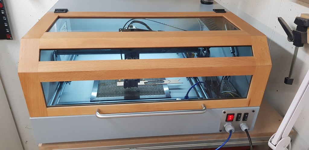 Mittlerweile hält die digitale Technik vermehrt Einzug auch in kleinere Werkstätten. Zu meinem kleinen Laser, den ich hauptsächlich zum beschriften nutze, gesellt sich nun ein grösserer Laser, der auch Holz bis zu 15 mm schneiden kann. Der grosse Laser ist eine weitere Bereicherung in meiner Holzwerkstatt und ermöglicht mit extrem feine und kleine Dinge herzustellen, die sonst nicht möglich wären.